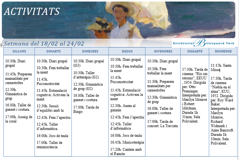 Activitats · Setmana del 18 al 24 de Febrer