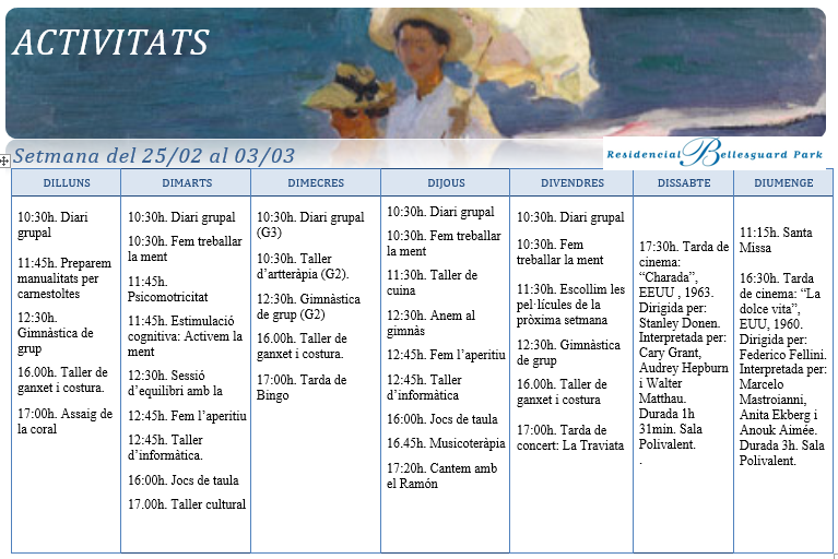 Activitats · Setmana del 25 de Febrer al 03 de Març