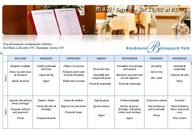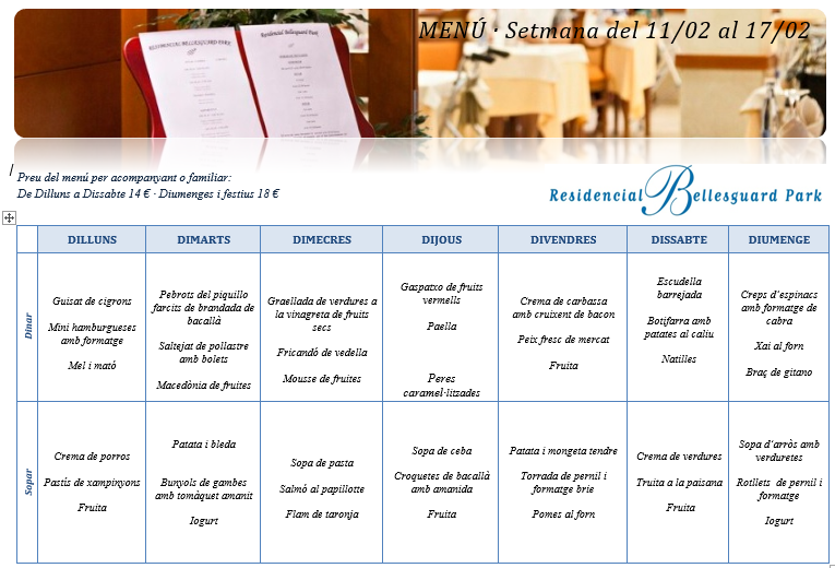 Menú · Setmana del 10 al 17 de febrer