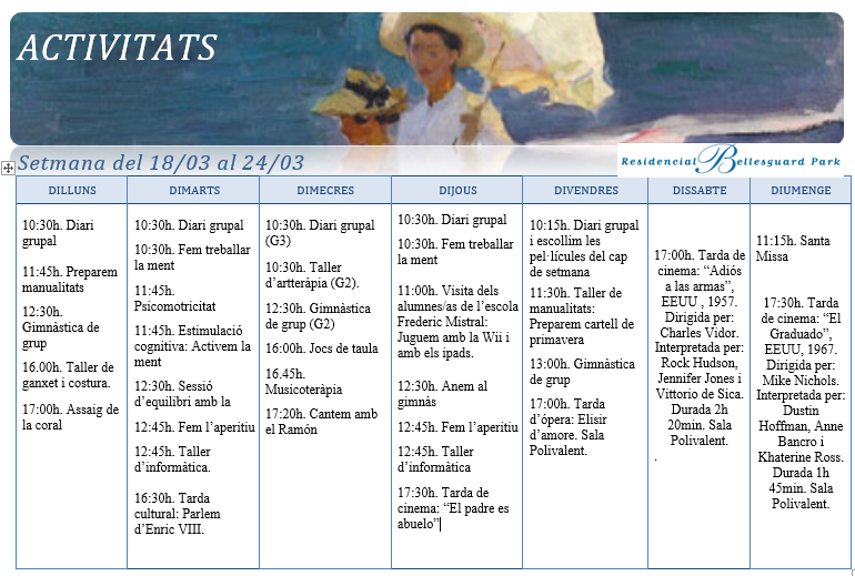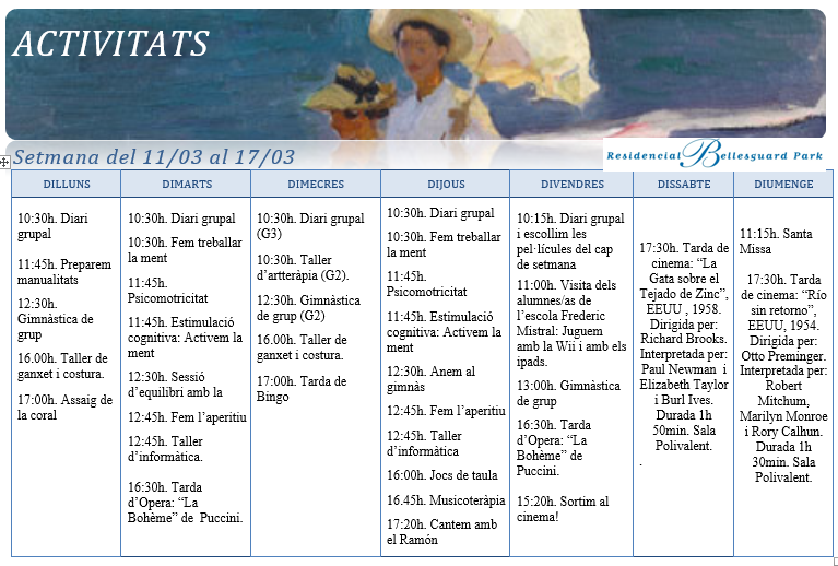 Activitats · Setmana del 11 al 17 de març