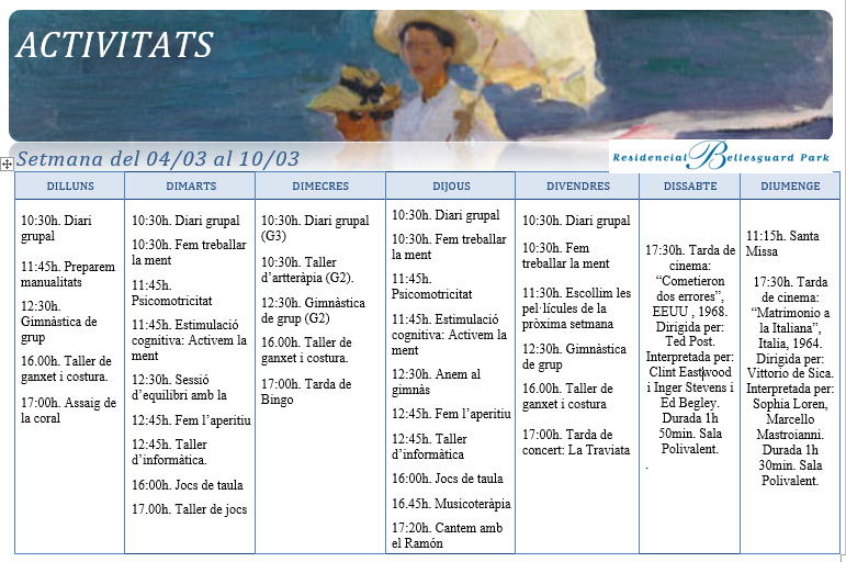 Activitats · Setmana del 4 al 10 de març