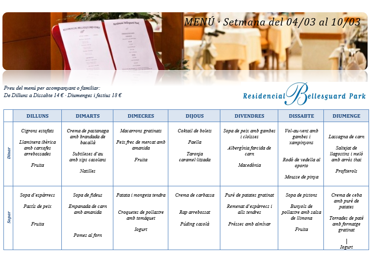 Menú · Setmana del 4 al 10 de març