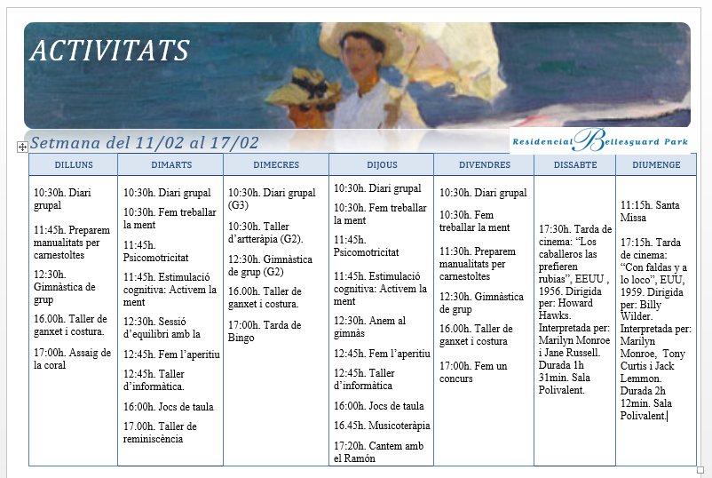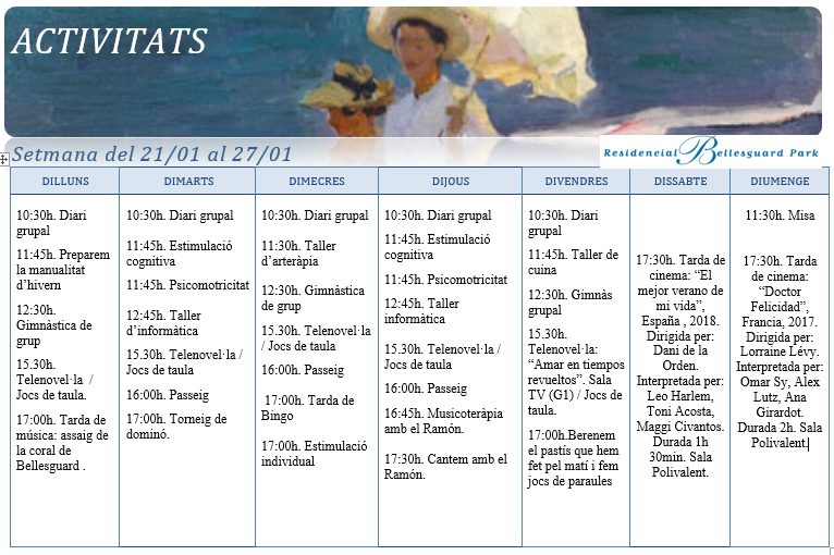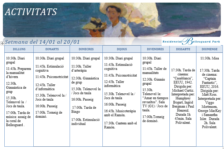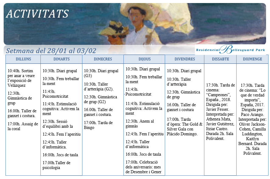 Activitats · Setmana del 28 de gener al 3 de febrer