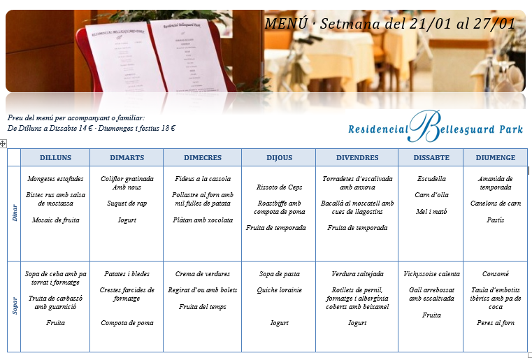 Menú · Setmana del 4 al 10 de febrer de 2019