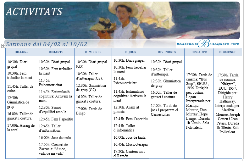 Activitats · Setmana del 4 al 10 de febrer de 2019