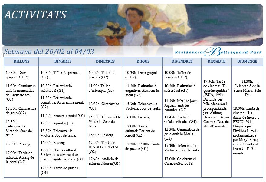 Activitats · Setmana del 26 de febrer al 4 de març