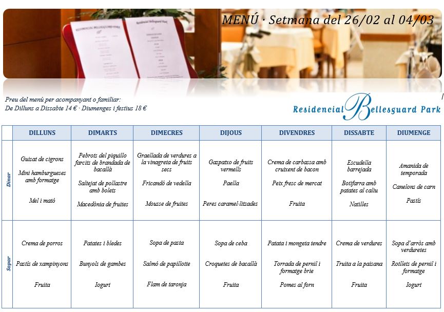 Menú · Setmana del 26 de febrer al 4 de març