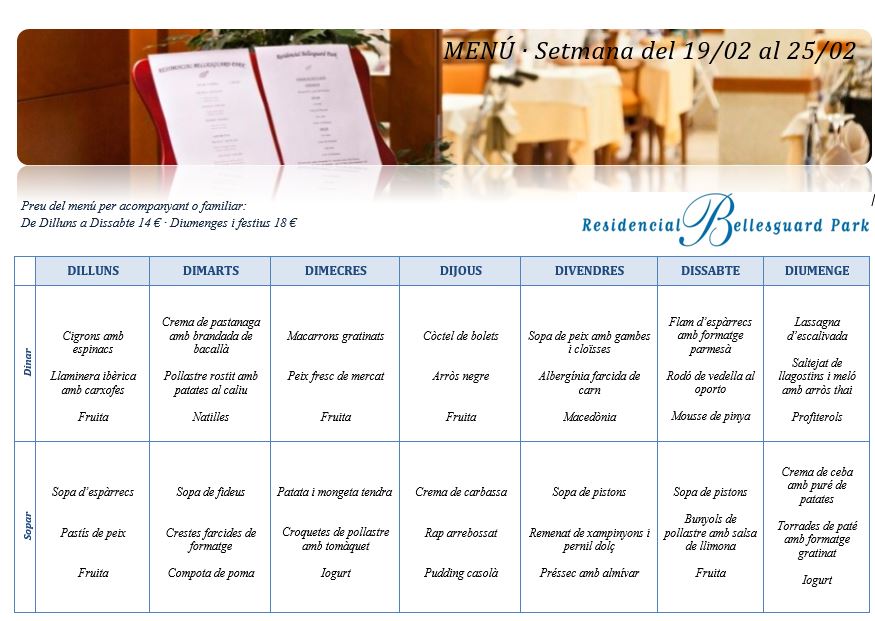 Menú · Setmana del 19 al 25 de febrer
