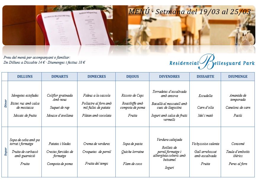 Menú · Setmana del 19 al 25 de març
