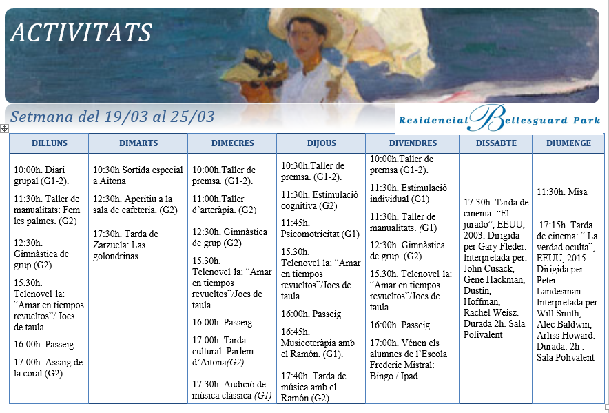 Activitats · Setmana del 19 al 25 de març