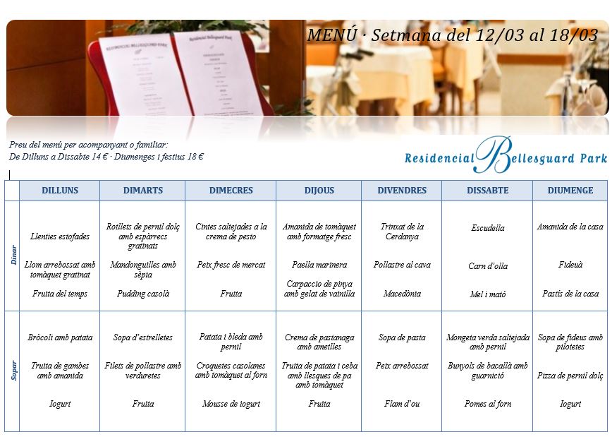 Menú · Setmana del 12 al 18 de Març