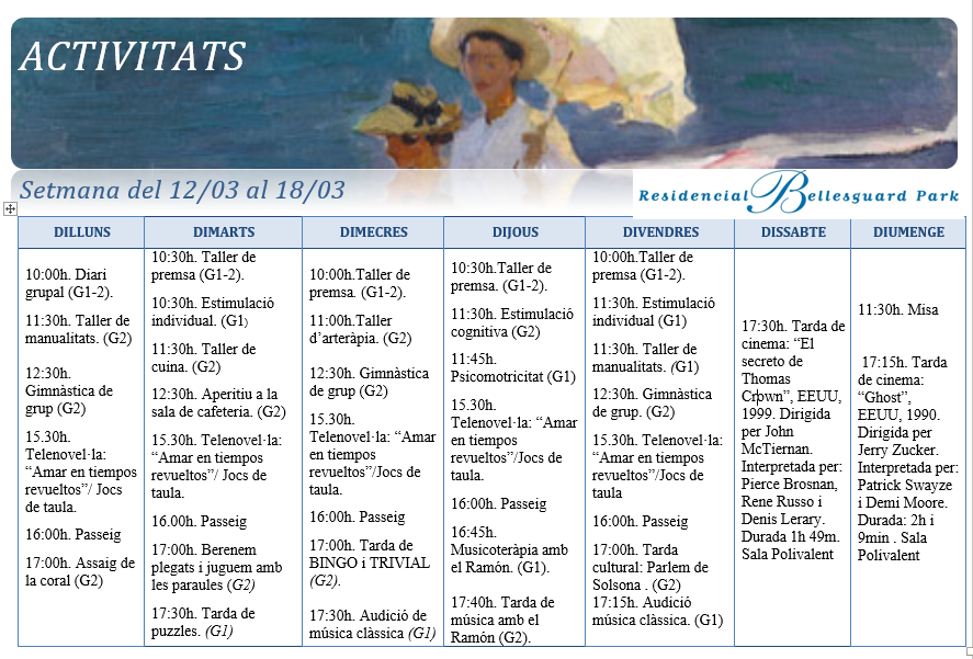 Activitats · Setmana del 12 al 18 de Març
