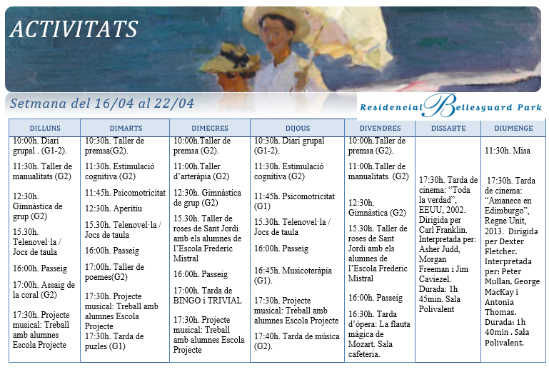 Activitats · Setmana del 16 al 22 d’abril