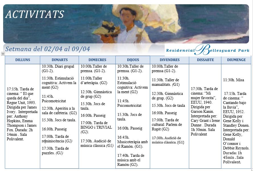 Activitats · Setmana del 2 al 9 d’abril